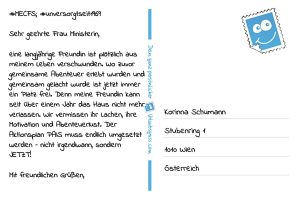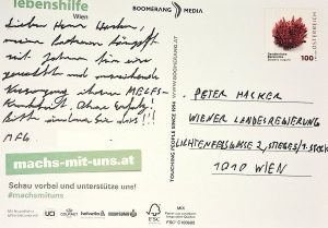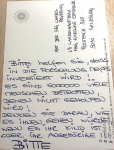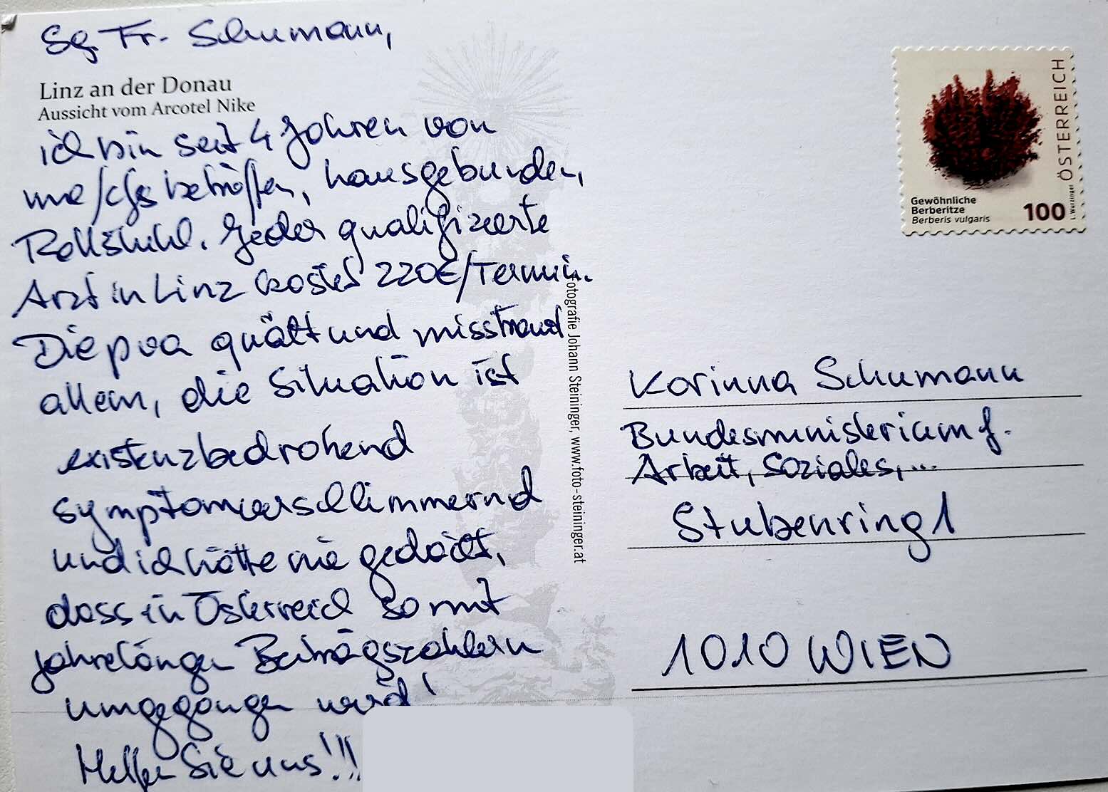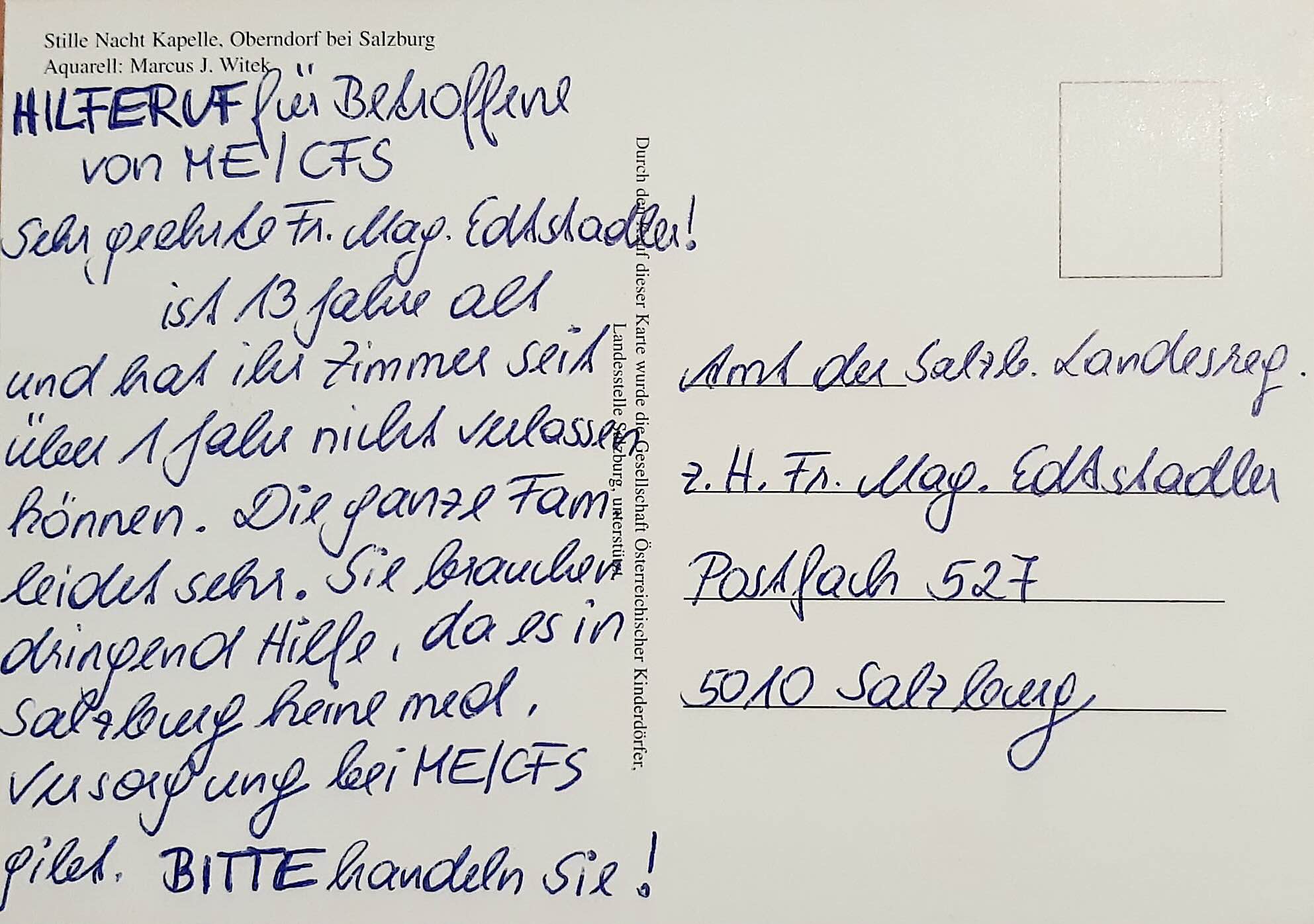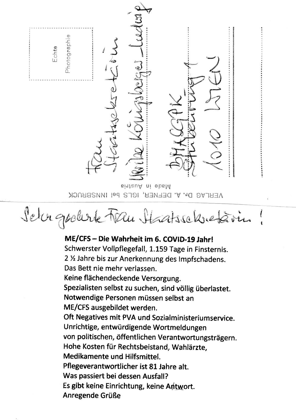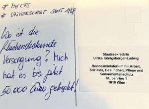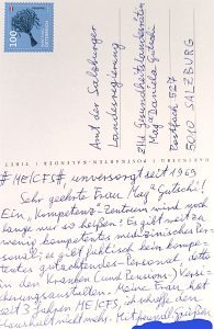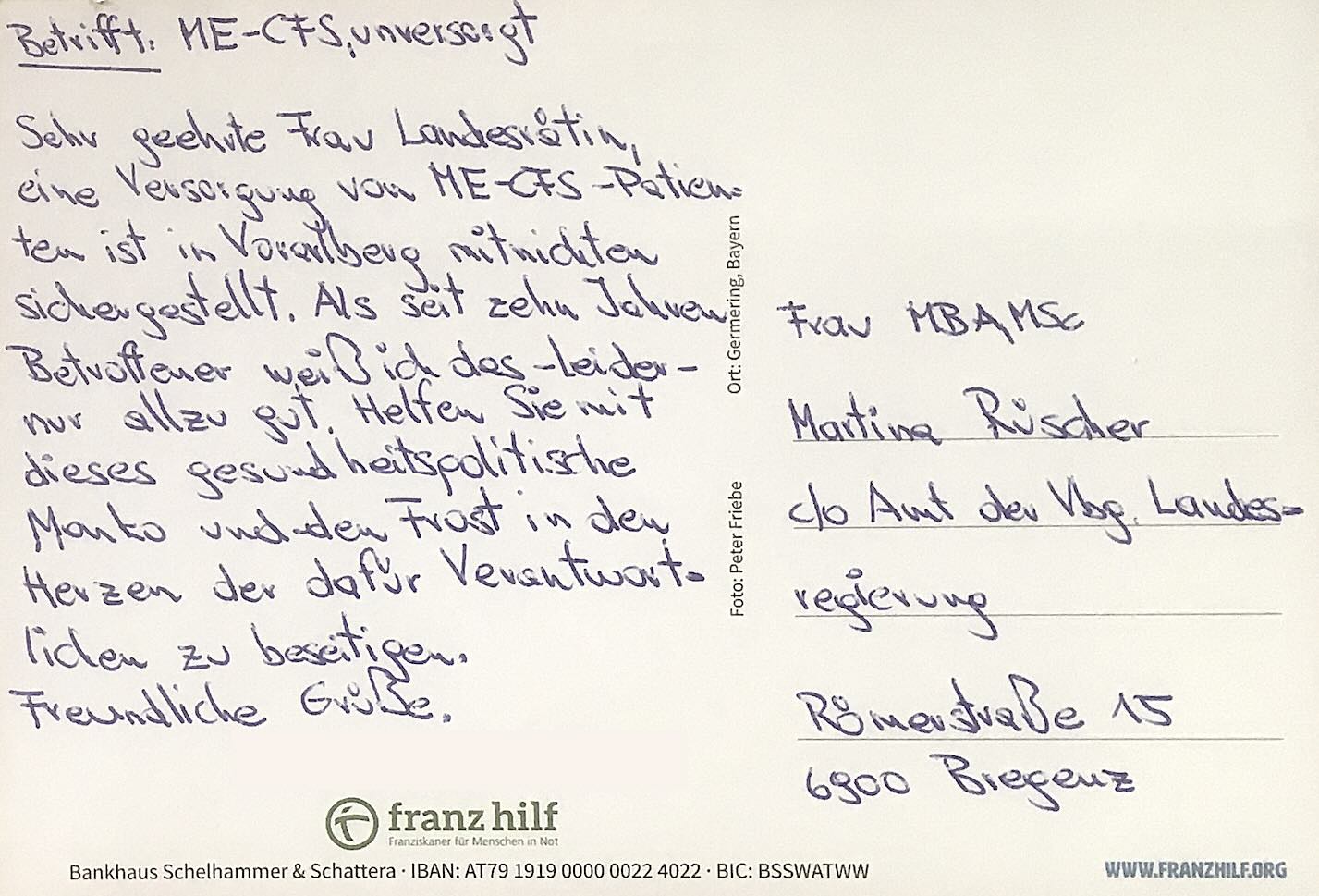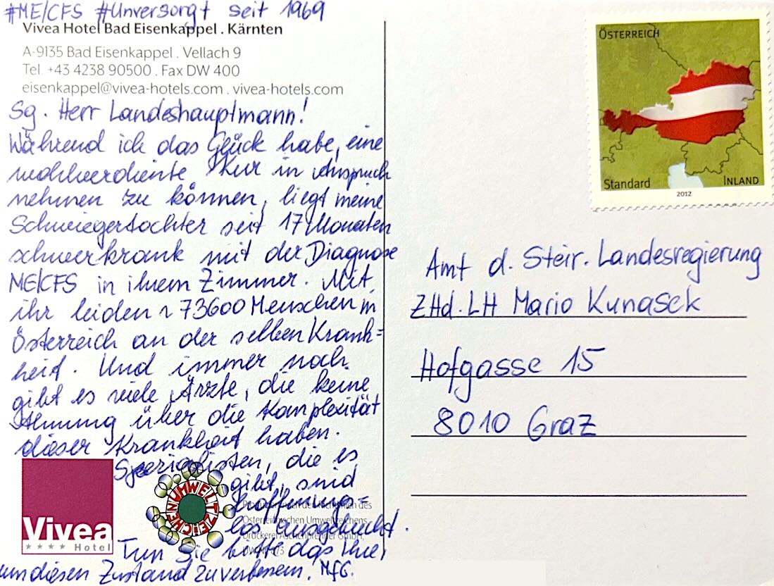 Um auf die Situation der Betroffenen – bedauerlicherweise erneut – aufmerksam zu machen, starten wir eine digitale Protestaktion in Form einer Postkartenaktion. Wir freuen uns über alle ME/CFS-Betroffene, Angehörige von Betroffenen oder nicht-Betroffene die sich an der Aktion beteiligen! Alle Infos zur Protestaktion gibt es hier.