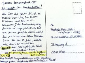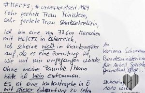 Am 12. Mai fand unsere Protestaktion von 10 bis 12 Uhr statt. Der Veranstaltungsort musste aufgrund einer einberufenen Sondersitzung im Nationalrat kurzfristig geändert werden, da während Nationalratssitzungen eine 300m Sperrzone um das Parlament für Kundgebungen gilt. Für den Protest wurde daher auf den Heldenplatz ausgewichen.