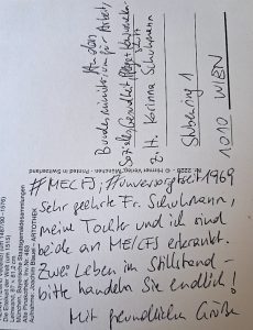 Rund um den 12. Mai waren wir sehr aktiv in den sozialen Medien um auf die Protestaktion und die zehntausende ME/CFS-Betroffene aufmerksam zu machen. Unter #unversorgtseit1969 wurden mehrere Sujets geteilt um darauf aufmerksam zu machen wie groß die Anzahl an ME/CFS-Betroffenen in Österreich ist.