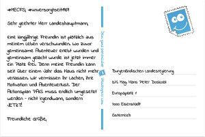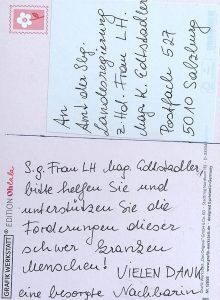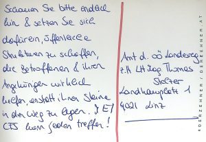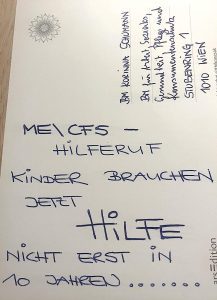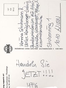 - Bei Versand außerhalb von Österreich 10€ Mindestspende für das erste Exemplar und 3€ Mindestspende pro Stück für jedes weitere Exemplar