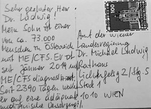 Das Gesundheitsministerium hat kürzlich in einer parlamentarischen Anfragebeantwortung bekannt gegeben, dass die Versorgung von ME/CFS-Betroffenen in Österreich “flächendeckend sichergestellt” sei. Diese Behauptung steht in deutlichem Widerspruch zur Realität, wo Betroffene gänzlich unversorgt im österreichischen Gesundheitssystem sind. Nähere Informationen gibt es hier.