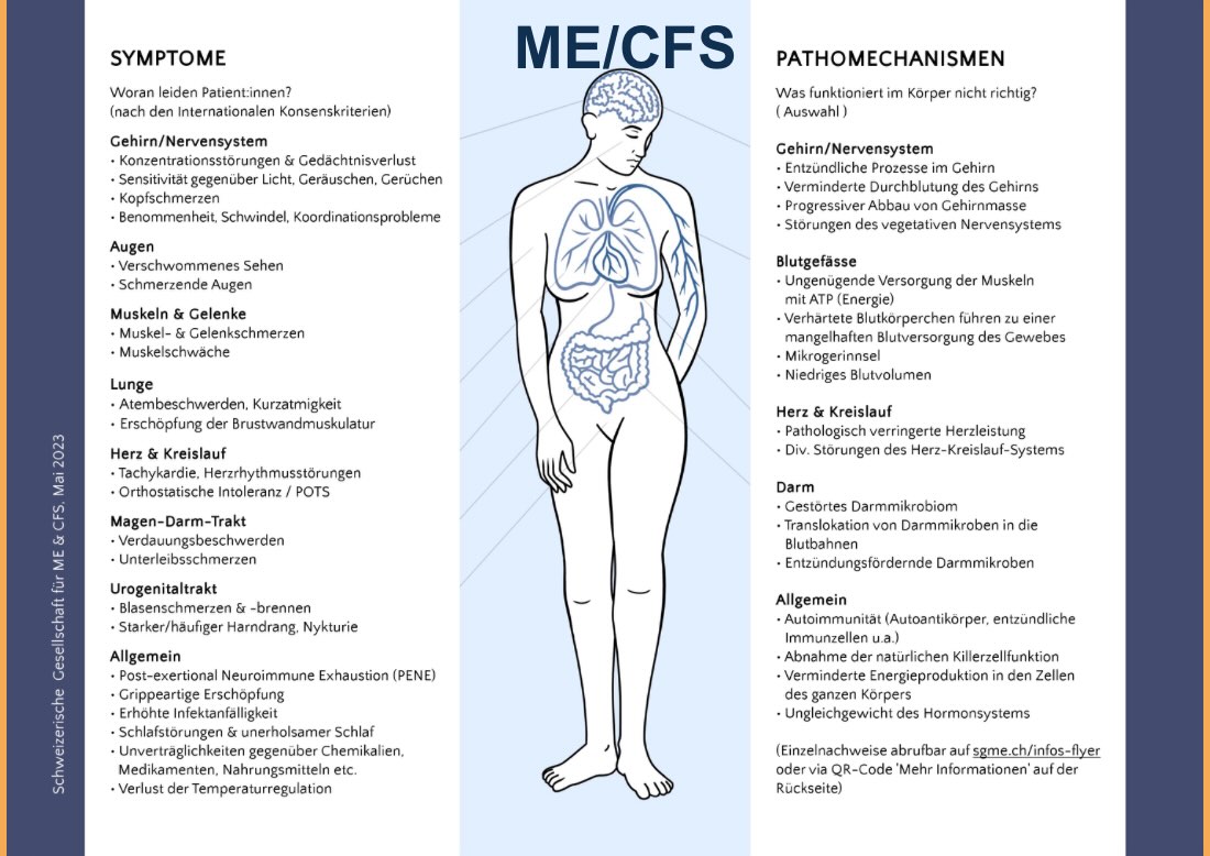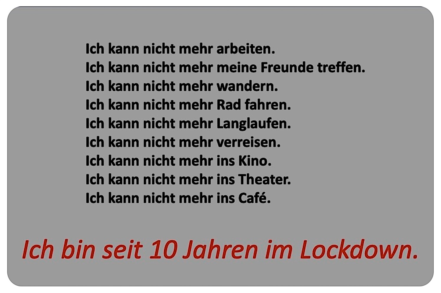 ME/CFS ist eine schwere Multisystemerkrankung, die bei einem Großteil der Betroffenen zum Verlust der Arbeitsfähigkeit und bei vielen zur umfassenden Pflegebedürftigkeit führt.