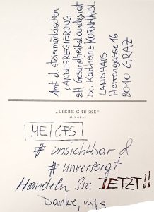 In Zusammenarbeit mit Barbara Kaufmann, Sigmund Steiner und Norbert Pfaffenbichler entstand ein Awareness-Video über unsere Protestaktion am 12. Mai.