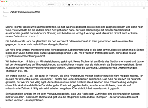 Die Familie von Alexandra, 23, bastelte ein lebensgroßes Plakat. Es zeigte die junge Frau vor der Erkrankung und jetzt. Neben den schweren Symptomen war auch aufgelistet, was sie seit ihrer ME/CFS-Erkrankung nicht mehr kann. Darunter: “Längeres Gespräch als 30 Minuten”, “Arbeiten gehen bzw. studieren” oder “Alleine Haare waschen und föhnen”.
