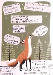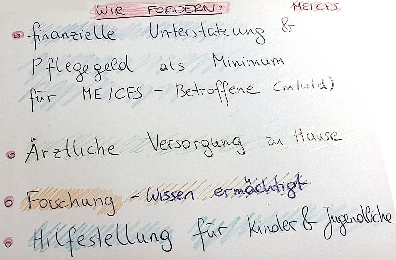 die anstehenden Aktionen wurde dabei auch über ME/CFS und die schwierige Versorgungslage der Betroffenen aufgeklärt.