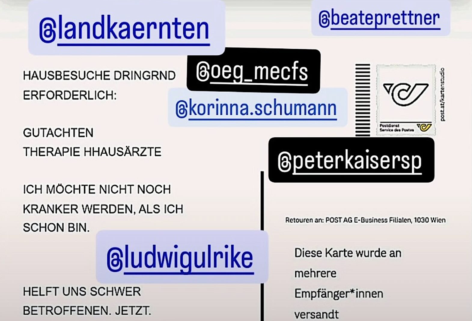 Die Social Media Aufrufe zur Teilnahme an der Aktion wurden gleichzeitig zur Aufklärung über die katastrophale Versorgungslage der ME/CFS-Betroffenen in Österreich genutzt. Mehrere Sujets wurden auf allen Social-Media-Kanälen geteilt, um die große Zahl an Betroffenen und die fehlenden Versorgungsmöglichkeiten aufzuzeigen (siehe unten).
