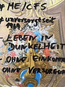 Das Engagement von Betroffenen rund um den 12. Mai ist sehr schwierig. Durch die Schwere ihrer Krankheit sind sie in ihren Möglichkeiten stark eingeschränkt. Gerade das Hauptsymptom Post Exertional Malaise (PEM) macht die Beteiligung an Aktionen, vor allem wenn sie „vor Ort“ sind, nicht nur zu einer großen Herausforderung, sondern auch zu einer Gefahr der langfristigen Zustandsverschlechterung. Denn bei Überschreiten der minimalen Belastungsgrenzen verschlechtert sich der Zustand von ME/CFS Betroffenen – im schlimmsten Fall dauerhaft. Für Schwer und Schwerstbetroffene, ist selbst eine Online-Beteiligung ausgeschlossen.